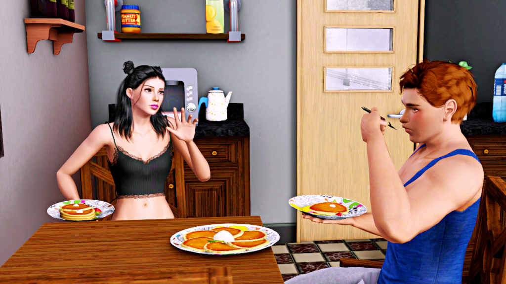 Their first breakfast together consists of Patrick’s (only) specialty, pancakes, lol.