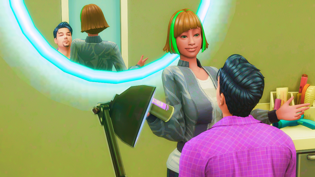 Allan: (Peeks out to see his face in the mirror). Hm… it’s not bad.
