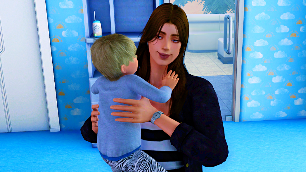Cynthia: She’ll be back tomorrow, in the meantime, Jason will play with you, then he’ll take you to sleep, and when you wake up, mommy will be back, okay?