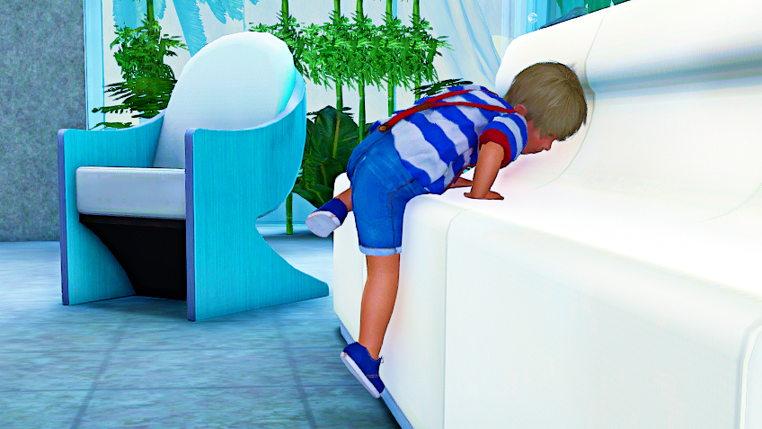 During his explorations, Davy finally discovered something interesting, the couch, which looks like a useful object when it comes to standing up.
