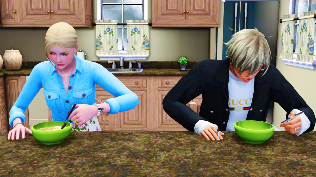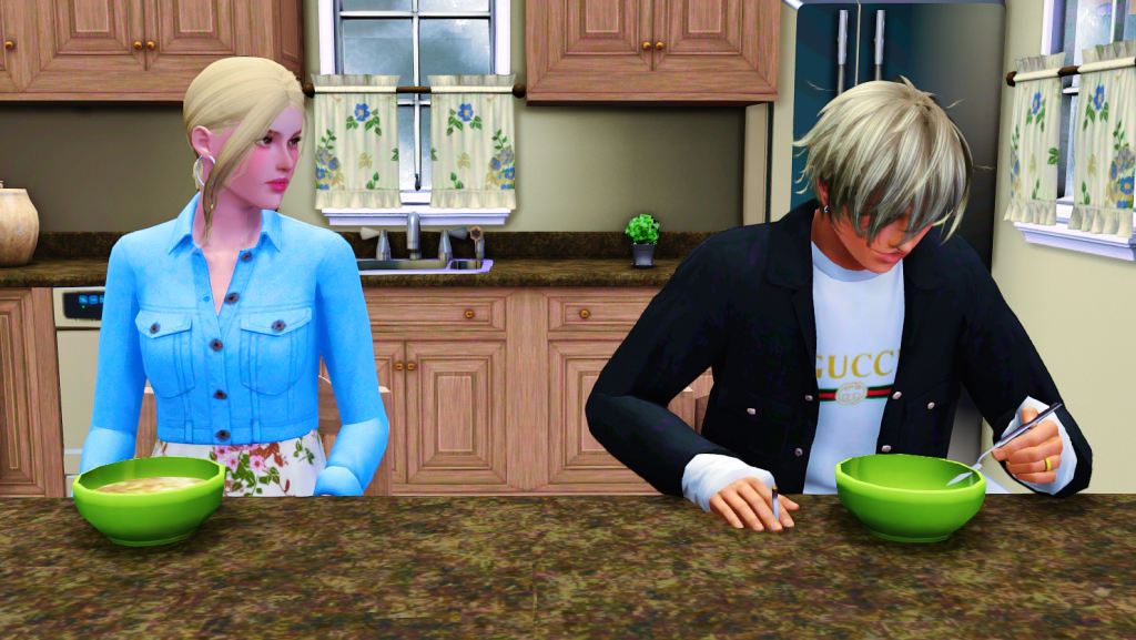 Tyron falls deathly silent and hurries to finish his dinner.