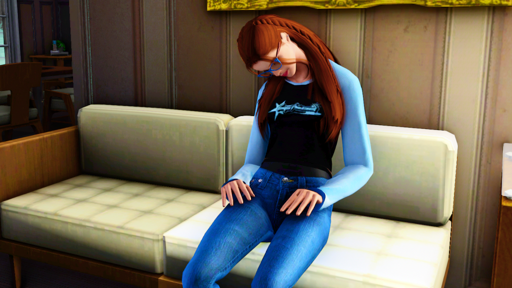 As he passed through the living room he noticed Sarah sitting asleep again, this time on the living room couch. He deduced from the change of clothes that she had gotten up, but felt sleepy again. College life can really wear you down.