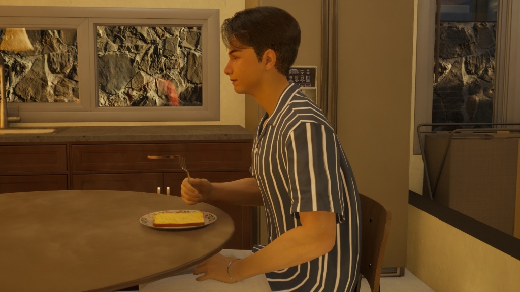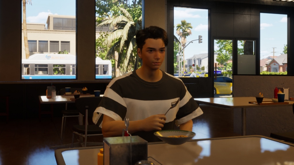 Here with his first date, Gwen. Yeah, that didn’t prosper thanks to John’s Hunger need that was extremely low. He had to go get something to eat, Gwen got fed up and left. 😆