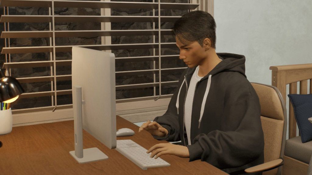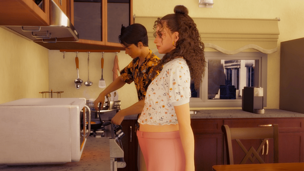 Here’s some more of my first Inzoi save, with my first OC ever, John Robinson. The truth is that this time I had to improve the pictures a bit, since when I started playing this game, my graphic options were not very good. Now I’ve learned a bit more about how to adjust them, plus recently the developers made an update that improved shadow casting and lighting, making the zois look much better both indoors and outdoors.