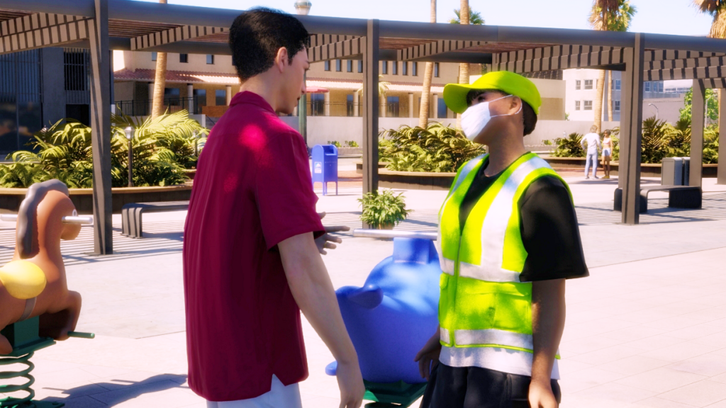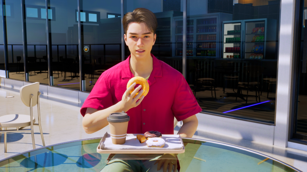 John poses for us with his donut, lol. The graphics improved a lot since the April updates. In this photo there’s a bit too much daylight, but the detail of the zois certainly improved. If you look closely, you can even see a slight nasolabial line on John, which is not noticeable at first glance. These details are even more visible in CAZ.