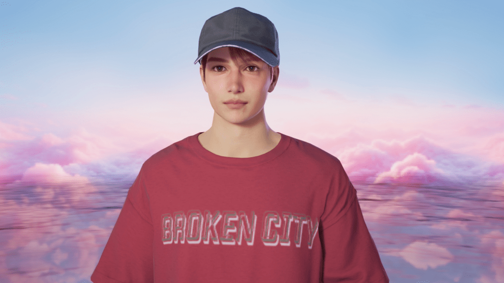Now let’s get down to business. Yes, this is Rowan Crane, the son of Robin Crane and Juliette Shen from my Time Traveler story (The Sims 3). In it, “Rowie” is only two years old, but here we see him as a young adult. Now, could the sign on his T-shirt be a clue about the future or the city where he grew up? Rowan’s story has not yet been told, but it will be soon if the game’s content allows it later on.