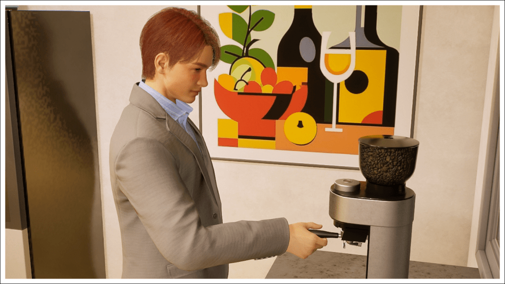 Making coffee. I love that in Inzoi, making coffee is a skill you can improve so you can make higher quality coffee every time.