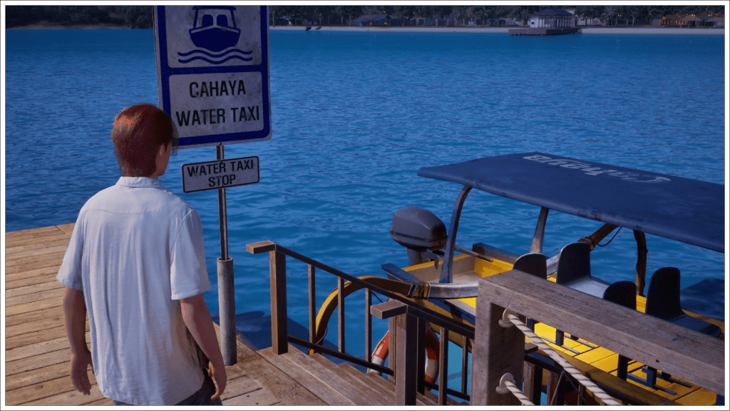 Brad, taking the water taxi back home after spending the whole day on the boat exploring the surroundings, I was trying to see if you could disembark on the islands in the background, but it turns out you can’t, or at least I couldn’t figure out how. Some of them are even beyond the map’s limits, so no.