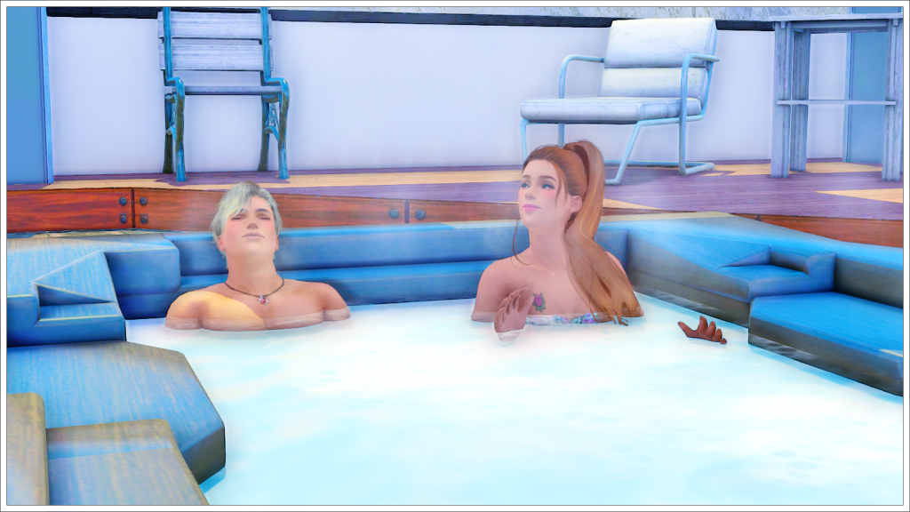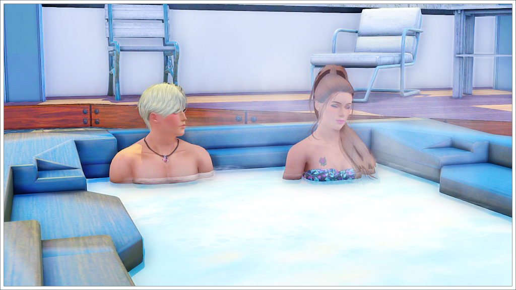 Before Tyron could raise any objection, Katie tied her hair back in a ponytail, took off most of her clothes, and got into the hot tub. He had no choice but to join her.