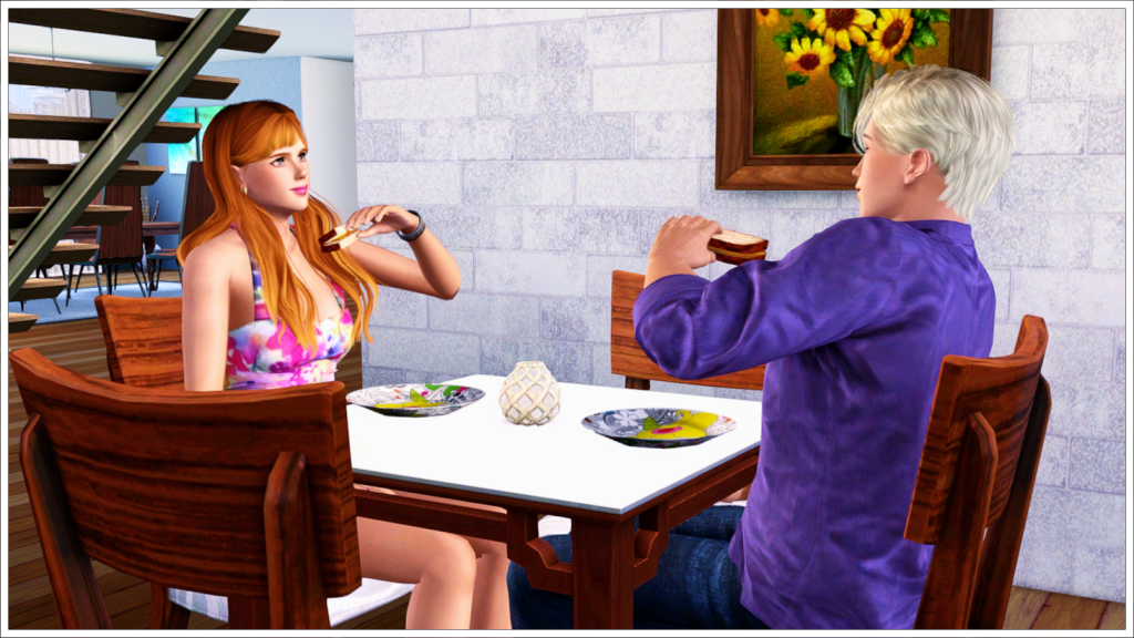 Later, Tyron prepared lunch for himself and Katie. She made sure to change into more comfortable clothes.
