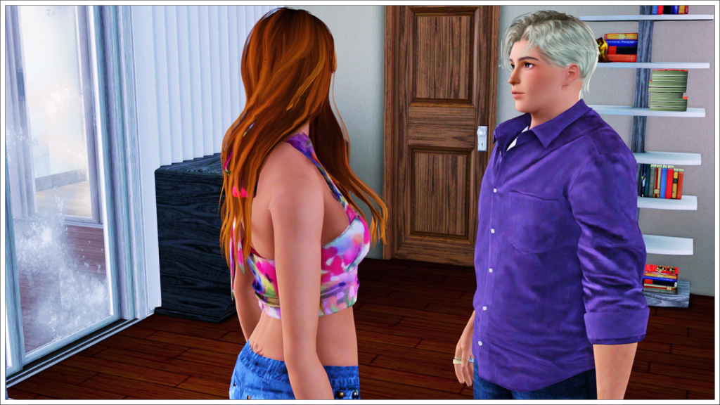 Tyron: She probably will, at first, but I hope she’ll understand when I explain everything to her. I only ask that you follow my rules. You’re free to walk around the house, just keep your distance and respect boundaries at all times, okay?