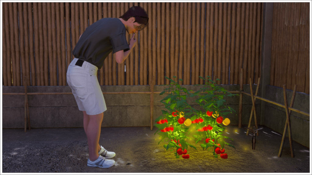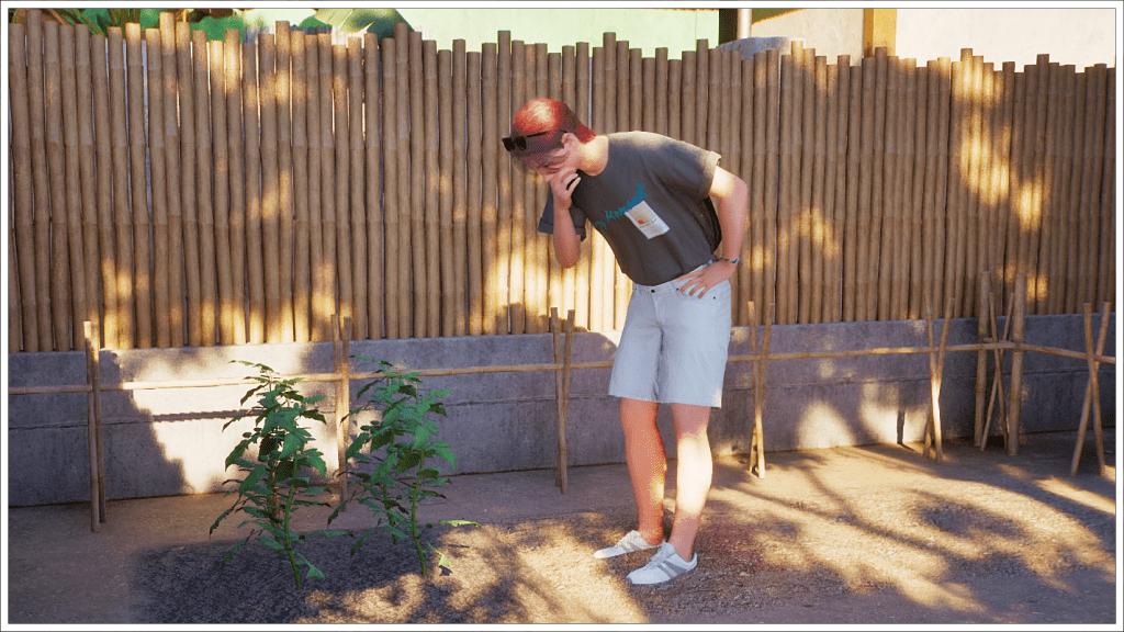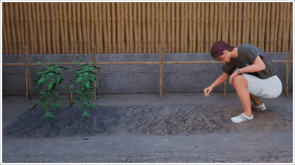 Planting his first potatoes. With his skill level now, he can only plant those and tomatoes.