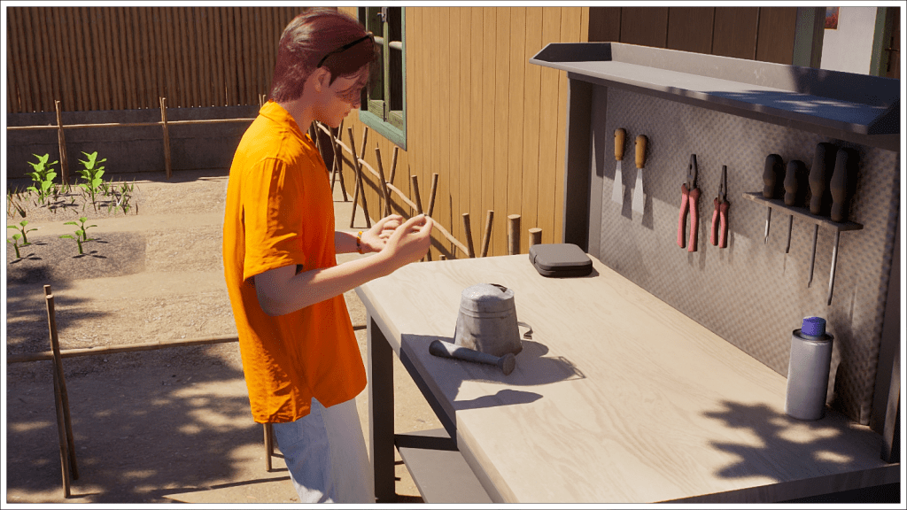 Anyway, to take his mind off her, Brad tries to distract himself with different activities, such as crafting things on the workbench.