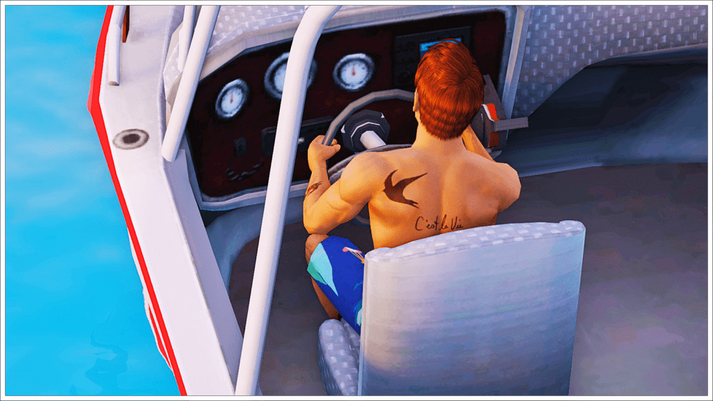 Returning from the dive spot, sporting his new tattoos, one consists of a swallow with outstretched wings; and the other is the phrase “C’est la Vie.” He got these tattoos when he finally accepted that Cassandra would never return to him and decided to propose to Jeannine. Why did he pick this specific tattoos? Well, probably because the swallow symbolizes a well-traveled sailor, their ability to travel long distances and always return home; the phrase “C’est la Vie” is self-explanatory. Also, let’s not forget that Tony, first and foremost, is an adventurer. In every sense of the word. 😉