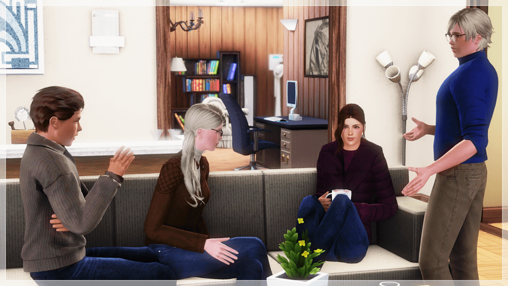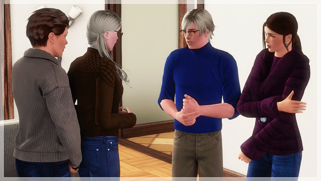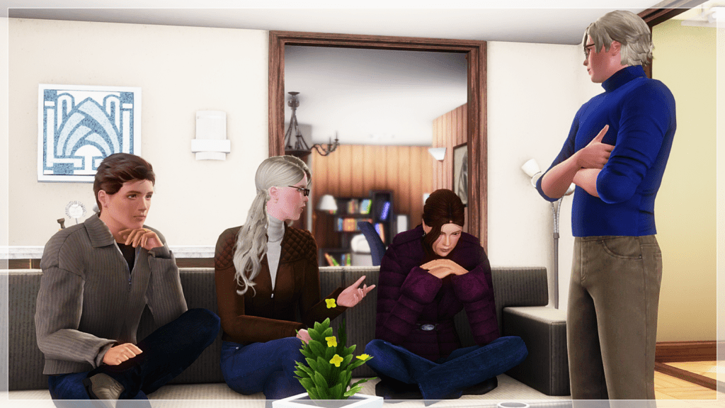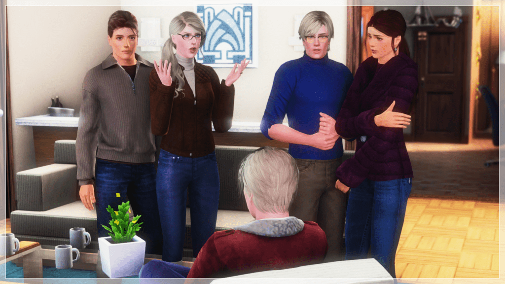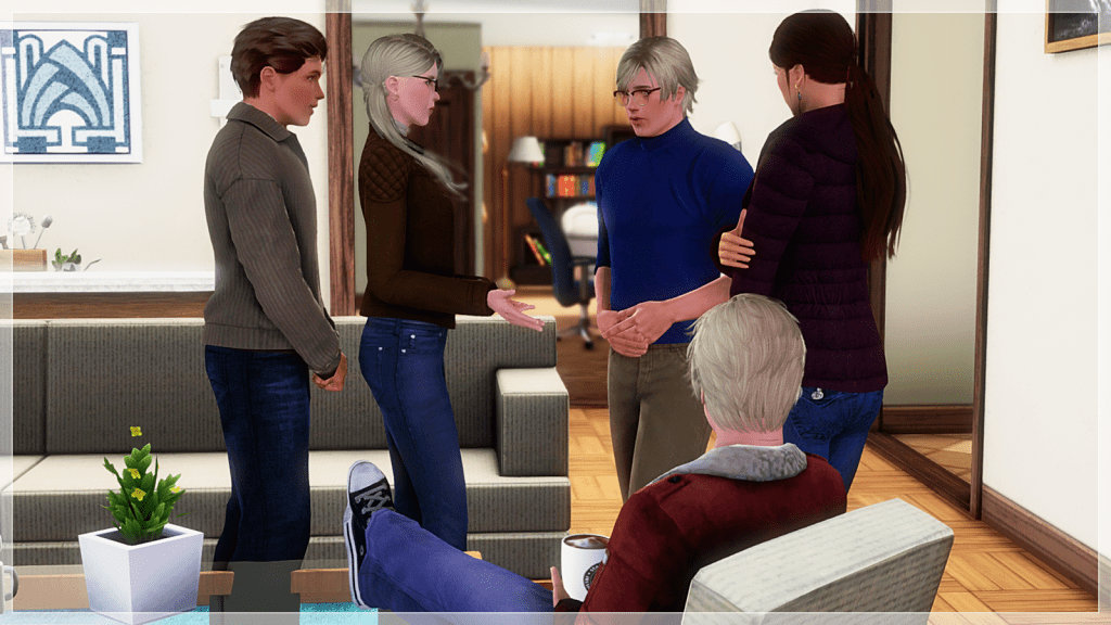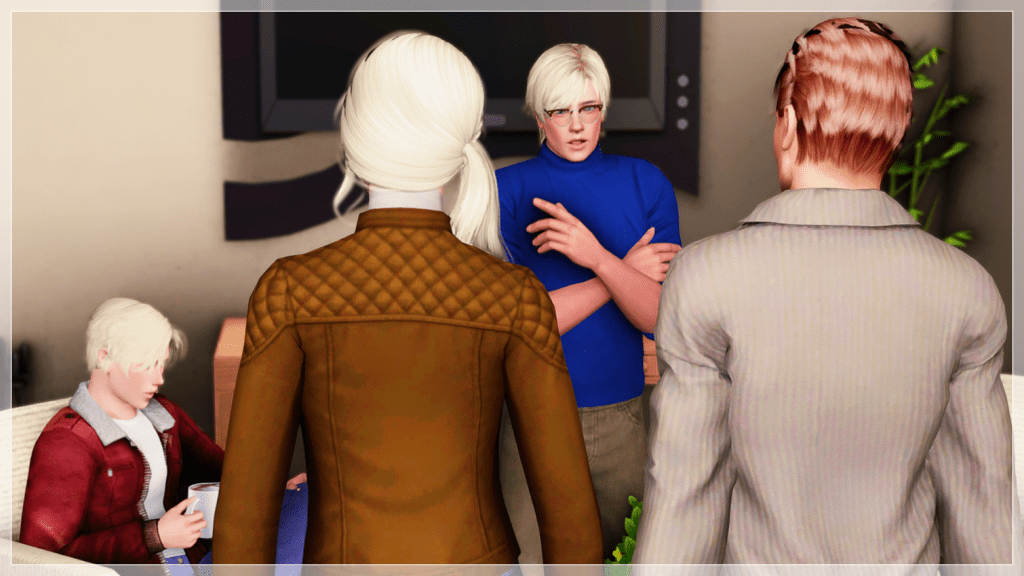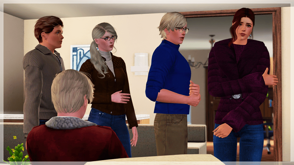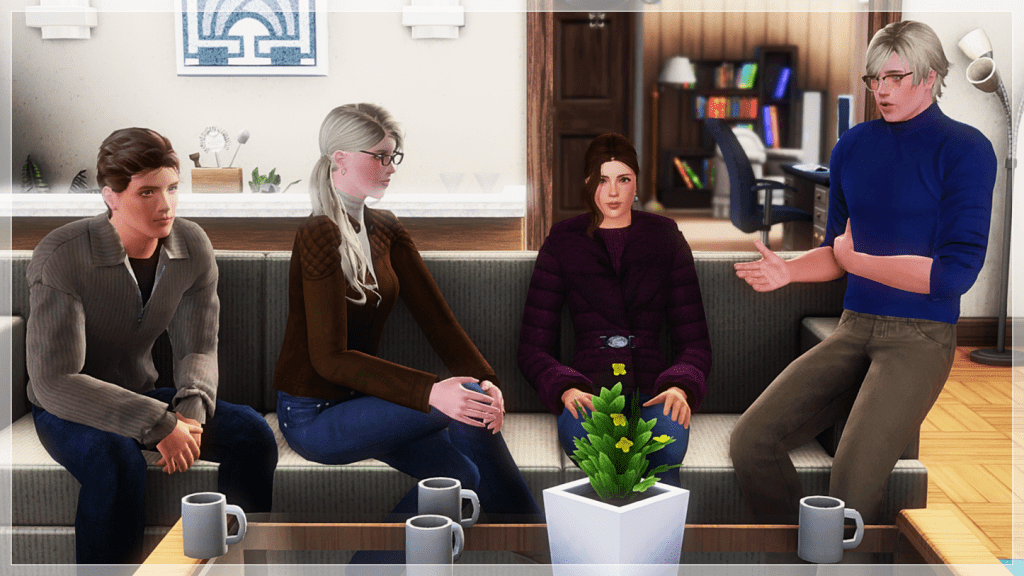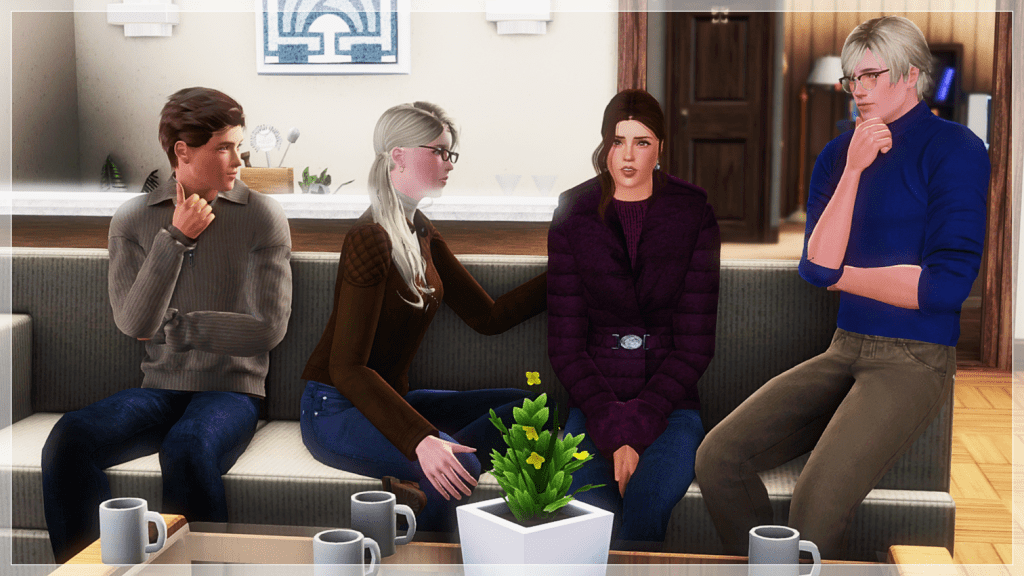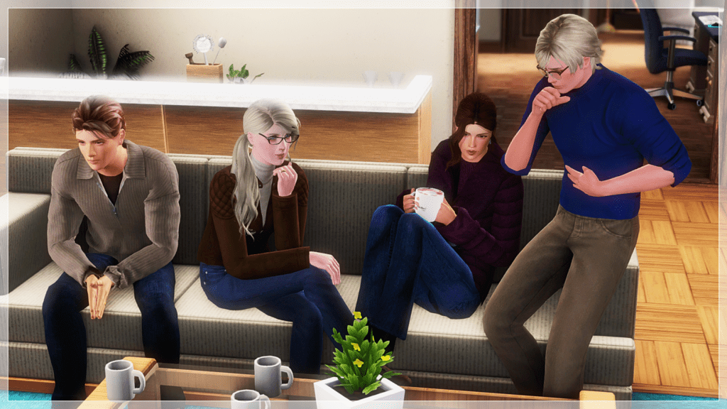 With everyone agreeing to postpone the wedding, the tension eased a little and they all returned to their seats. After a pause during which Juliette finally accepted her mother’s offer of a cup of coffee, she took a few sips, breathed deeply, and set it aside.