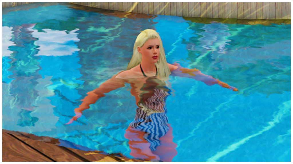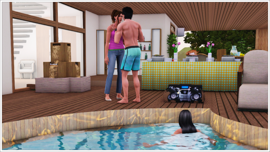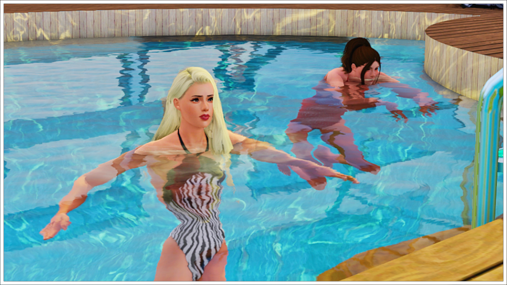 And… Holly has finally showed up. Apparently, she went to put on her swimsuit to go for a swim in the pool.