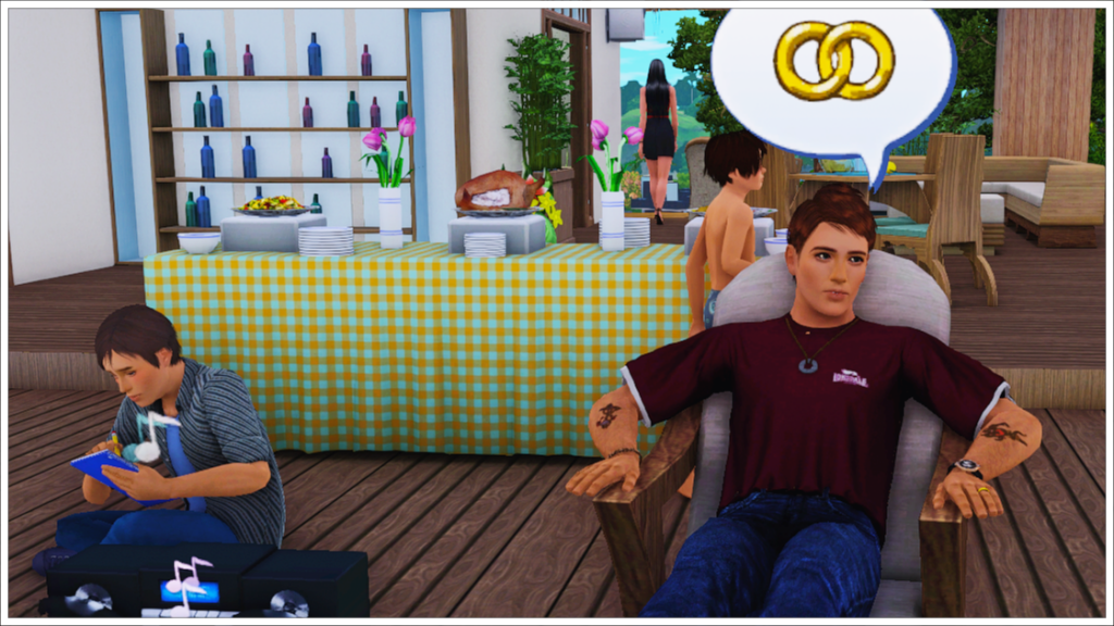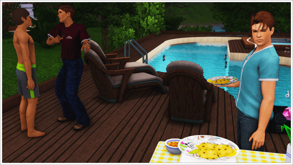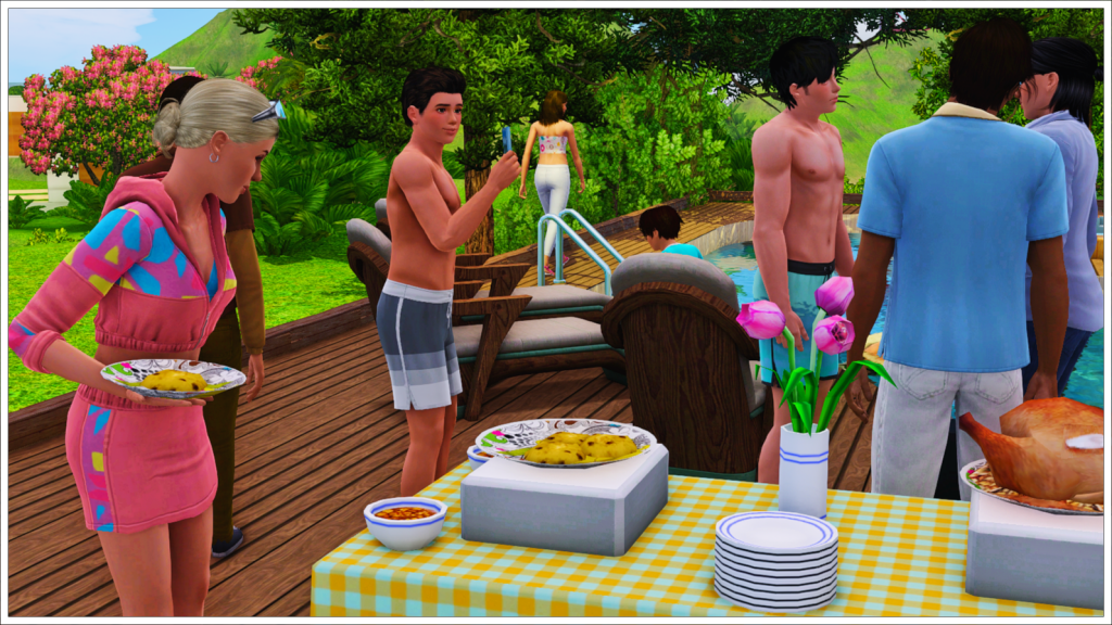 Well, I found these photos of the Langeraks during Tony and Jeannine’s anniversary party, and looking through them, I realized that, though it seemed like just another one of those chaotic Sims 3 parties, there was actually a lot going on there, so I decided to share it. 🤭