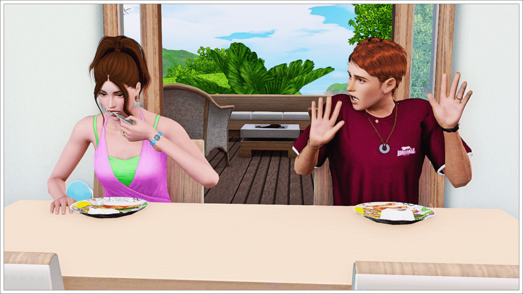 Perhaps it would be best to drop the topic for now and try again tomorrow. Maybe without the pressure of entertaining guests, Tony will be able to convince Jeannine that Cahaya is a thousand times better and more fun than Champs Les Sims? Well, she obviously doesn’t think so.
