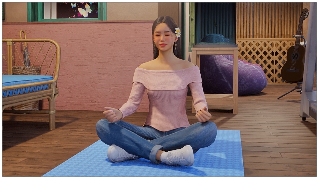 It’s the next day. Yoga, which Gyu-ri is an expert at, has helped her endure the extra hours at Brad’s home. Luckily, her friend Kirana will be putting her up at her place starting tonight and for an unlimited period of time.