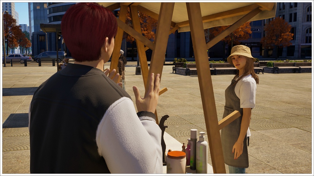 It turns out that before meeting his current girlfriend, Bomi Yoon, Rowan met Penelope Morris, a street vendor at the flea market, and immediately fell for her. A relationship with Penelope never really happened because she was never available, (typical Inzoi bug, lol).
