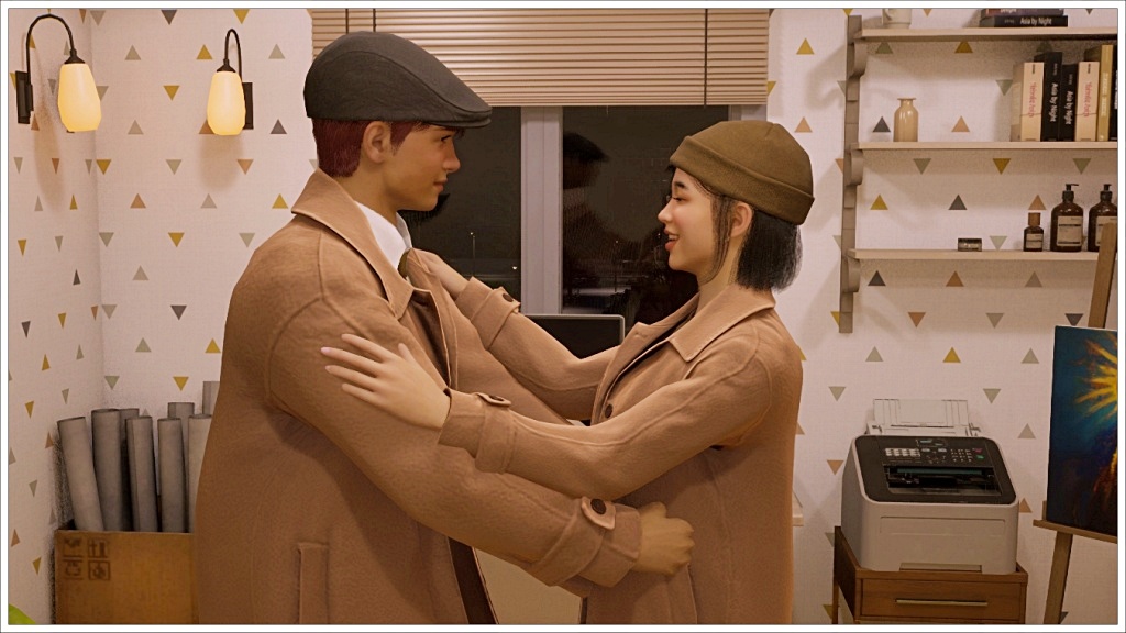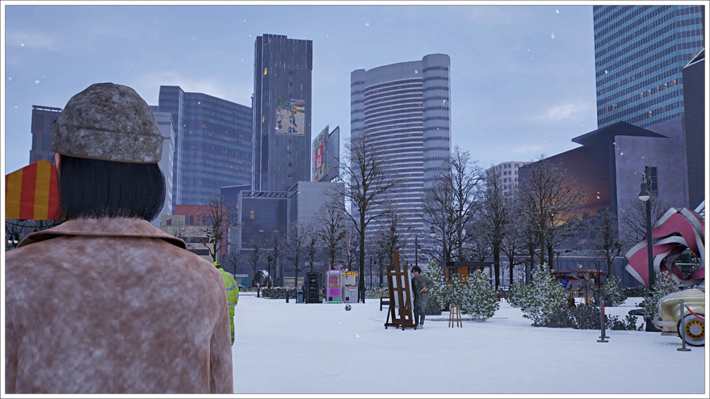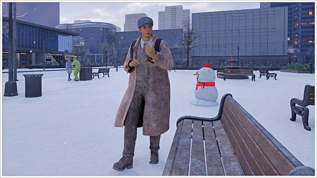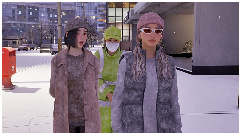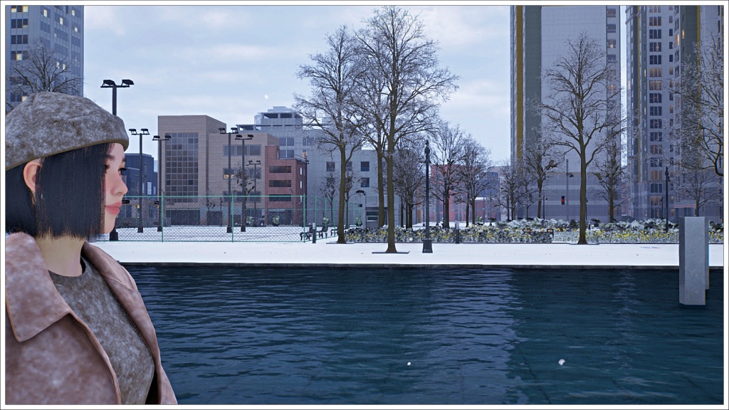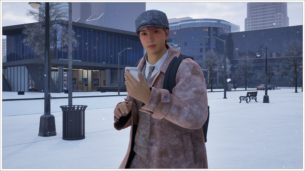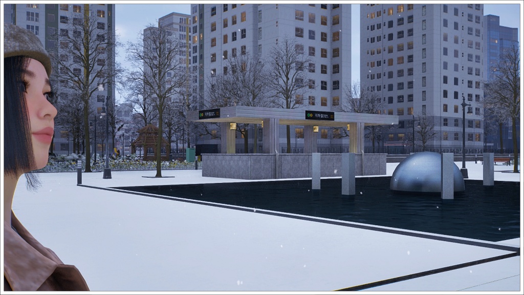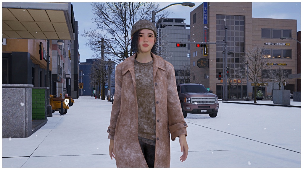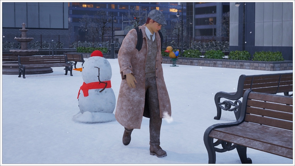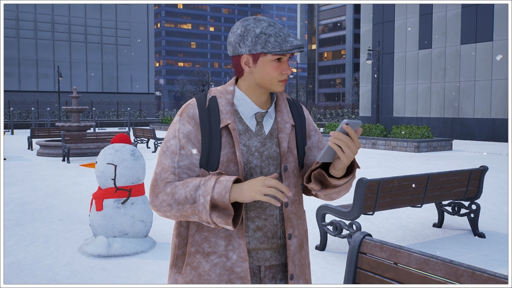 This was my first snowfall in Dowon, and in the game in general. Rowan and Bomi were supposed to meet at the park for what would be their second date. Rowan built a snowman to entertain himself while he waited for her, but something happened and Bomi didn’t show up (typical Inzoi bug), so he left.