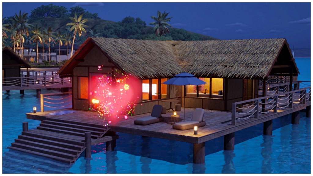 They stayed at the Private Water Villa, a cabin by the sea, a little further away from the rest of the resort facilities.