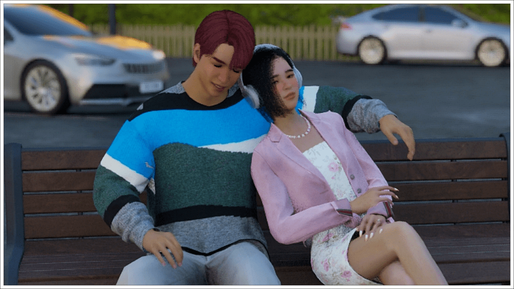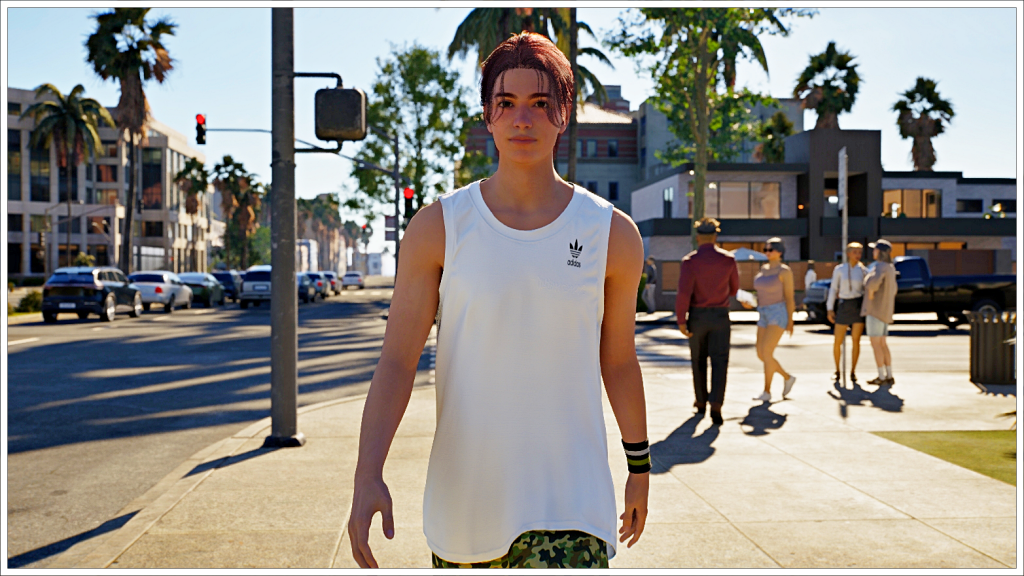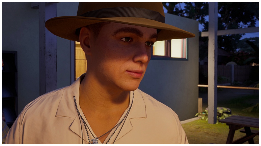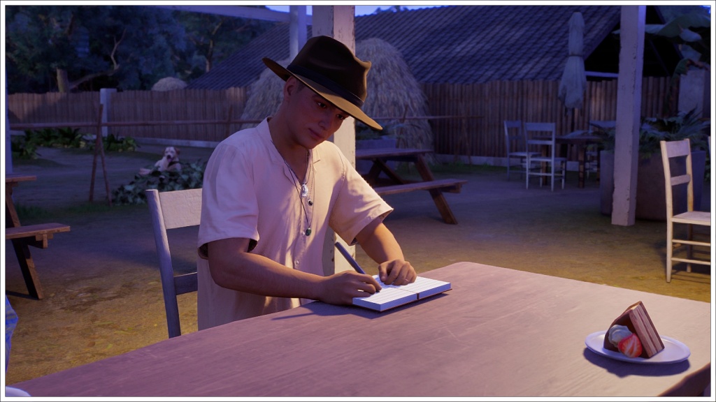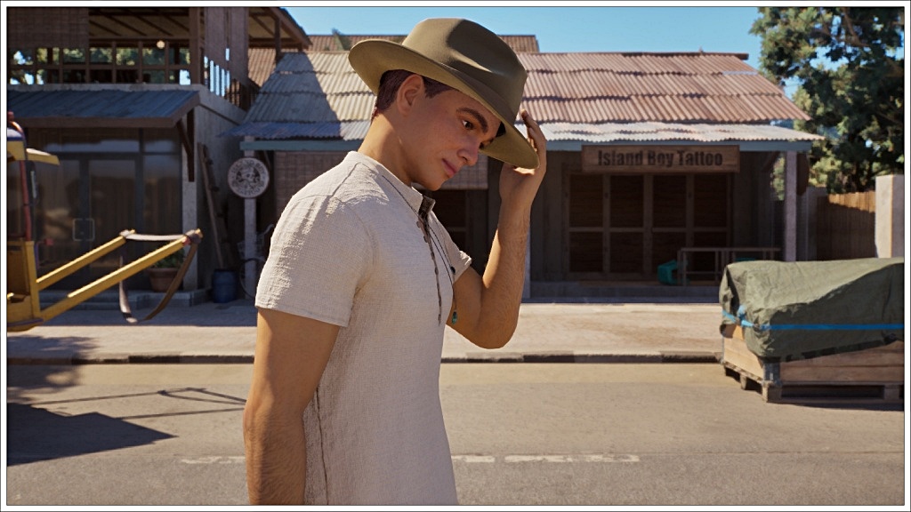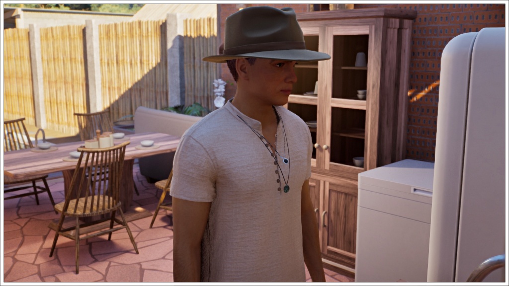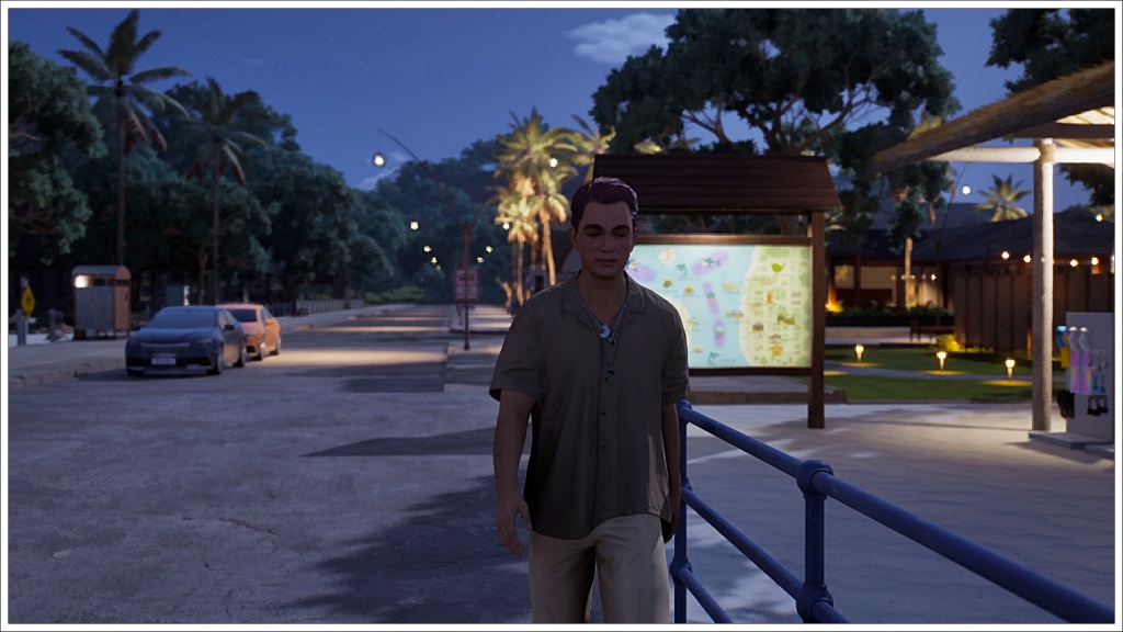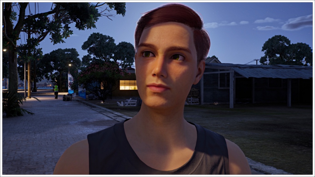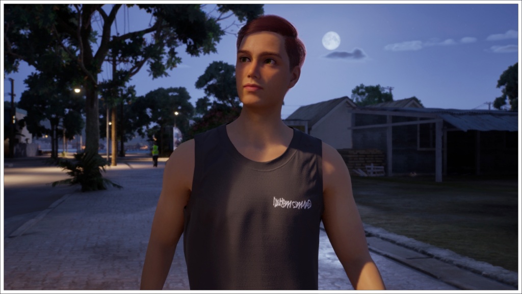 Once in the Inzoi world, walking through the streets of Cahaya. He doesn’t look very happy. Could it be that he misses Island Paradise? Or Jeannine?