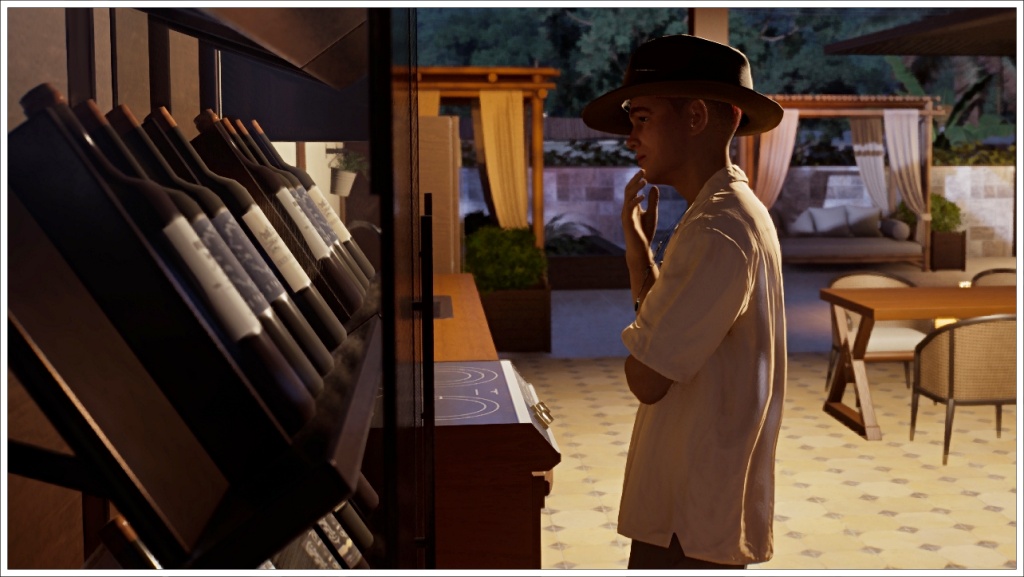 At home, deciding which of the wines from his private cellar to drink. I hope Inzoi will soon add wine making, cause Tony misses his vineyards, the grape harvest, his wine cellar, and the money he made selling them.