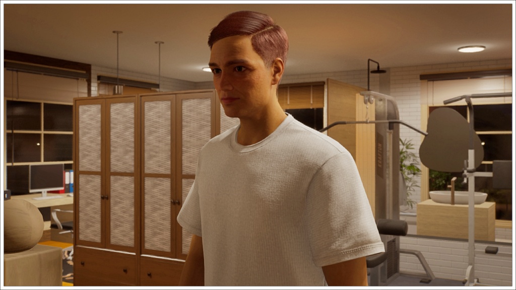 Another close-up to appreciate his dark green eyes and the subtle wrinkles on his face. Tony is middle-aged, but like Allan, I kept him as an adult because middle age in Inzoi feels too intense, in my opinion, it makes the Zois look more like seniors, which isn’t bad, but Tony isn’t a senior (yet).