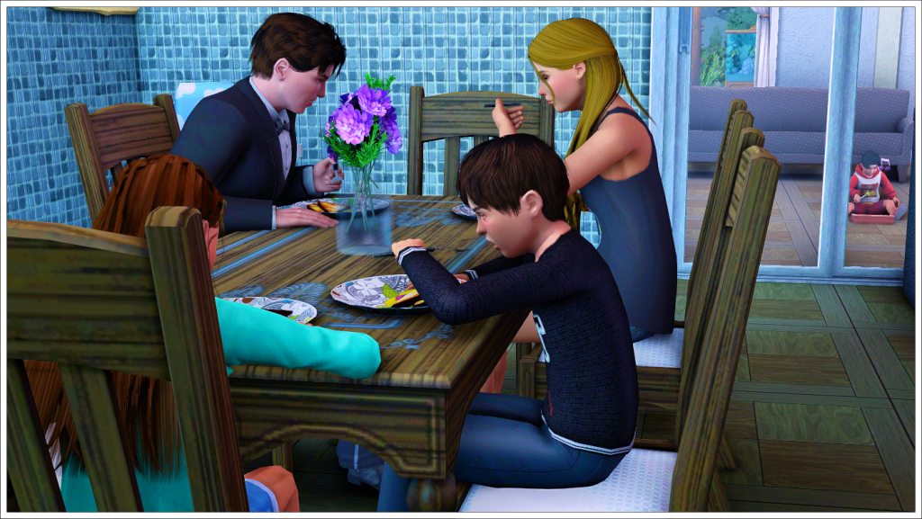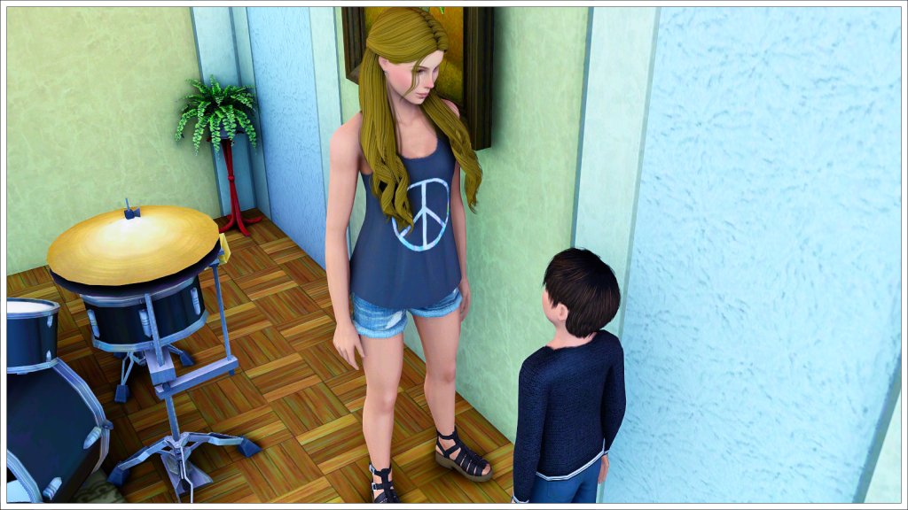 And Megan wanted someone to watch TV with her. Children’s shows aren’t Sam’s cup of tea, but it’s a good way to bond with her little sister.