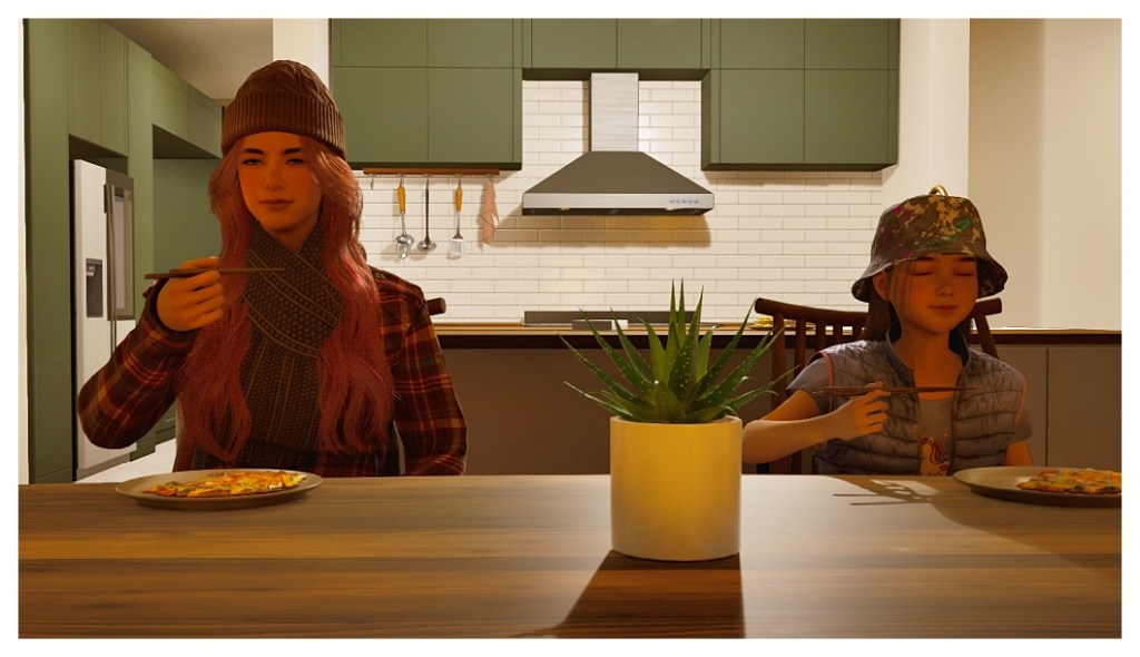 It’s finally dinnertime; Alyssa was eager to enjoy her mother’s cooking again.