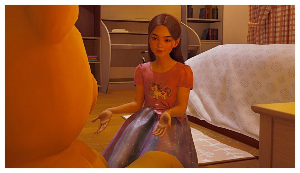 But before her mother calls her for breakfast, she decides to tell Teddy Bear about her concerns.