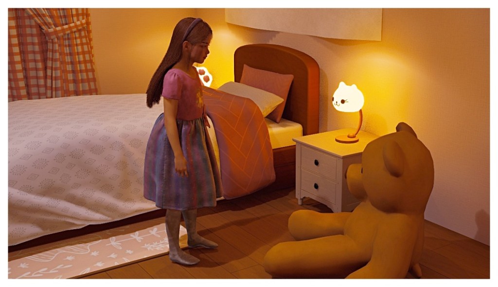 Alyssa: Good night, Teddy Bear; good night, little lamp cat. Good night, Mom, Dad, Brittany, Tiffany, and Weizhi.