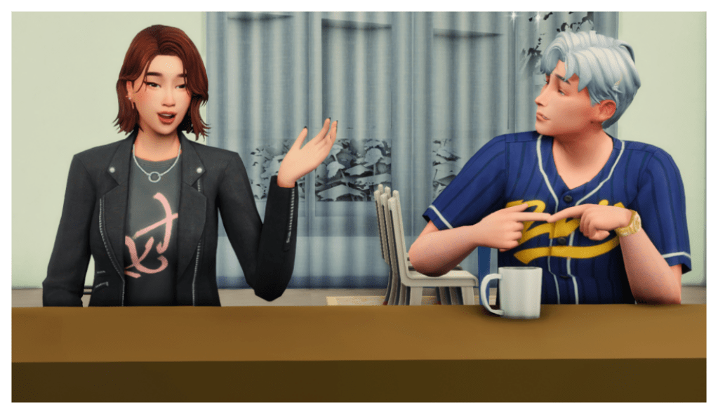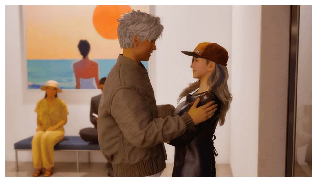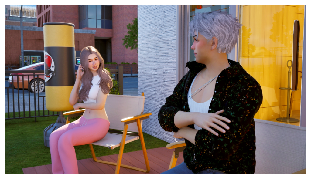 Anyway, to give continuity to “Coop’s” story, let’s say that after his breakup with Kaori, he moved to Bliss Bay (InZOI), where he met Kaitlyn Brown, who worked at the flower shop. It wasn’t love at first sight; Martin courted her unsuccessfully for a while until he finally convinced her to move in with him.