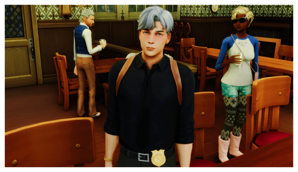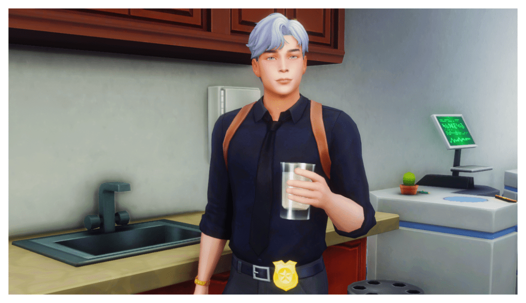 In The Sims 4, Marty was a police officer—a very good and honest one, in fact. He stood out for his genius in playing both the good cop and the bad cop all by himself, without any help during his interrogations. No criminal ever got away without making a confession.