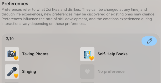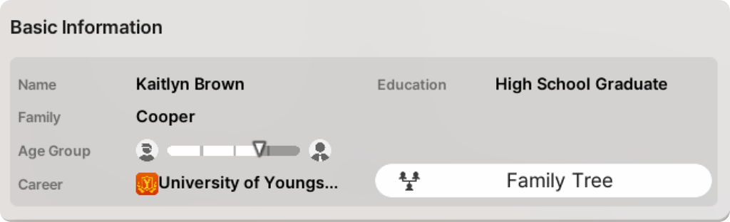 Kaitlyn was a young adult like Martin when they started their relationship, but according to the indicator, she is a little older than him. Also, although she and Martin share the “Cheerful” trait, Kaitlyn’s other trait is “Malicious,” which would explain why she sometimes acts cold or harsh.
